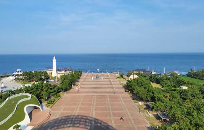 이곳의 가장 대표적인 상징물은 '상생의 손'이라는 조형물로, 바다와 육지에 각각 하나씩 세워진 거대한 손 모양이 인상적입니다.