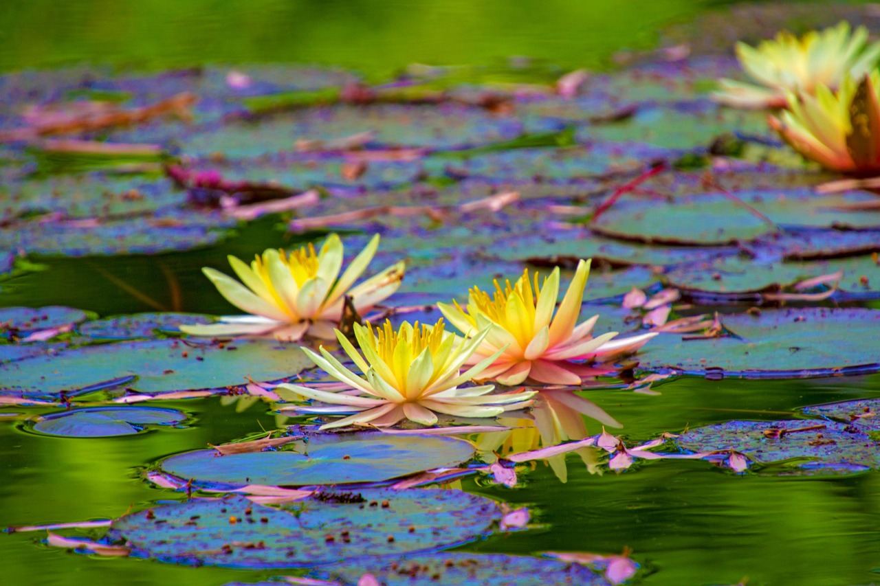 연꽃은 주로 6월에서 8월 사이에 개화하며, 흰색, 분홍색, 노란색 등 다양한 색상을 지니고 있어요.