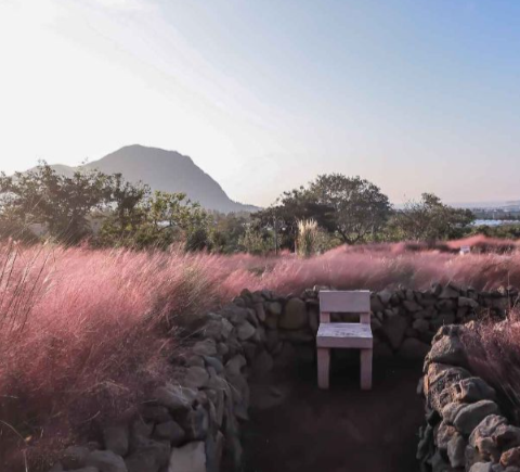 드넓은 정원을 가득 메운 분홍빛 핑크뮬리와 감각적인 카페의 조합은 여행의 완성도를 한층 끌어올려줄 거예요!