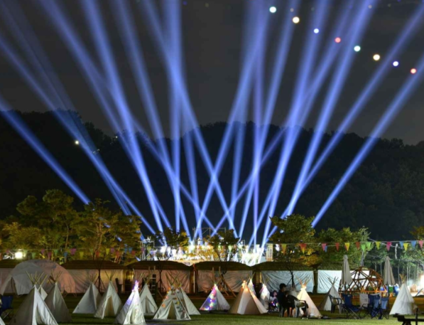 야간엔 상림공원이 LED 조명, 미디어 파사드, 수만 불빛 설치로 환상적 배경 제공, 밤에도 감성 가득한 관람 가능