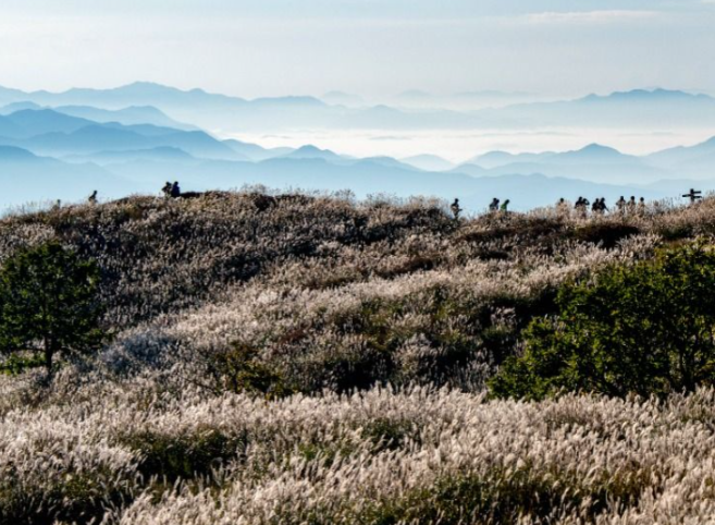 정상부 능선을 따라 억새가 600만㎡ 규모로 펼쳐져 있어 가을철이면 은빛 억새 물결이 끝없이 이어지는 황홀한 풍경을 자랑한다고 해요.