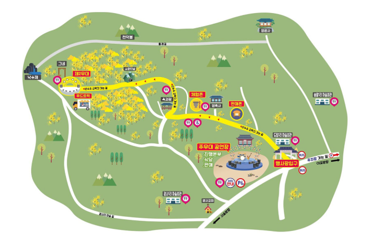 무대 공연이 마련되어 있어 지역 주민들의 전통 노래자랑, 태권도 시범, 버스킹 공연 등이 펼쳐집니다. 꽃길 산책과 함께 공연 관람까지 더해져 축제의 즐거움이 배가됩니다.
