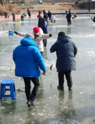 ㅁ결빙된 얼음 위에서 송어(또는 산천어)를 직접 낚는 체험