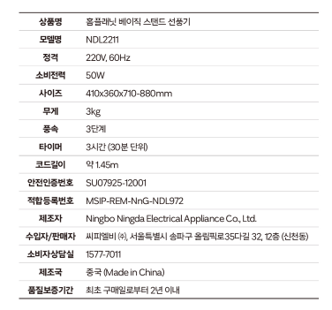 홈플래닛 선풍기 NDL2211