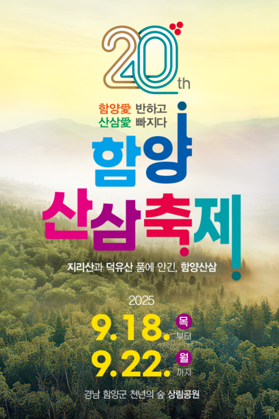 “2025 함양산삼축제”는 자연, 건강, 문화이 삼 박자로 어우러진 힐링 축제에요.