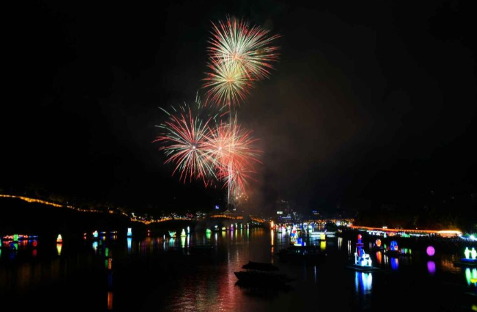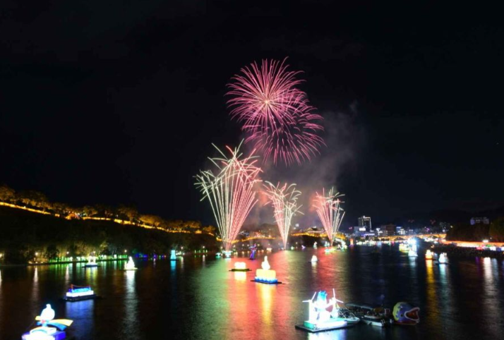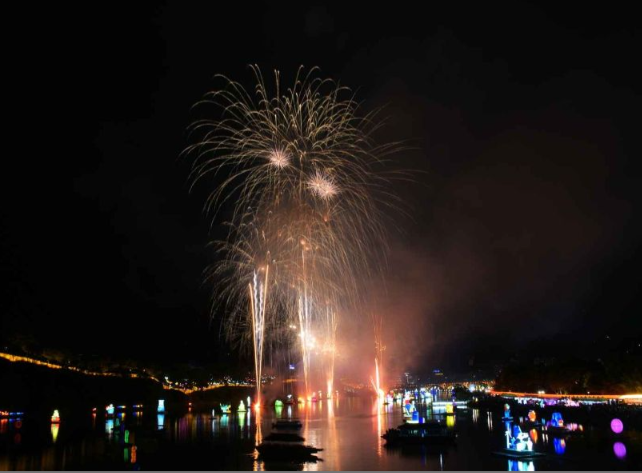 - 수천 개의 등이 강 위에 띄워져 반짝이는 물빛 야경 연출