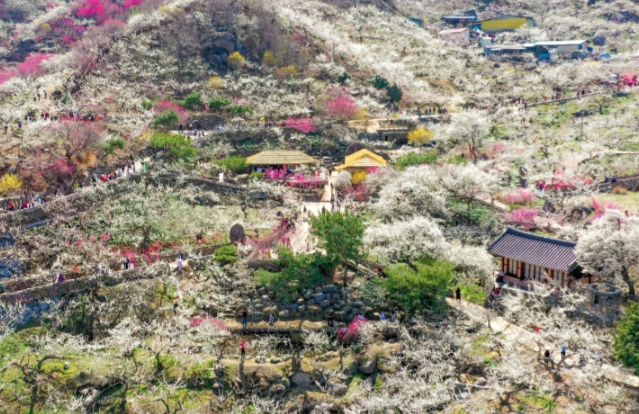 마을 전체가 매화나무로 뒤덮여 있어 봄철이면 마치 하얀 구름이 산자락에 내려앉은 듯한 장관을 이루죠.